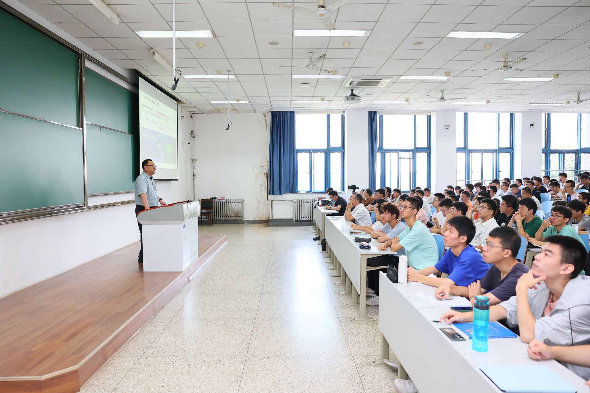 课堂中,宋校长从水下无人系统的定义与作用、水下无人系统的发展现状、水下无人系统的典型应用、自主水下航行器技术发展四个方面展开,全面详实地介绍了水下无人系统状况,为新生学子们带来一场精彩的学术盛宴。
