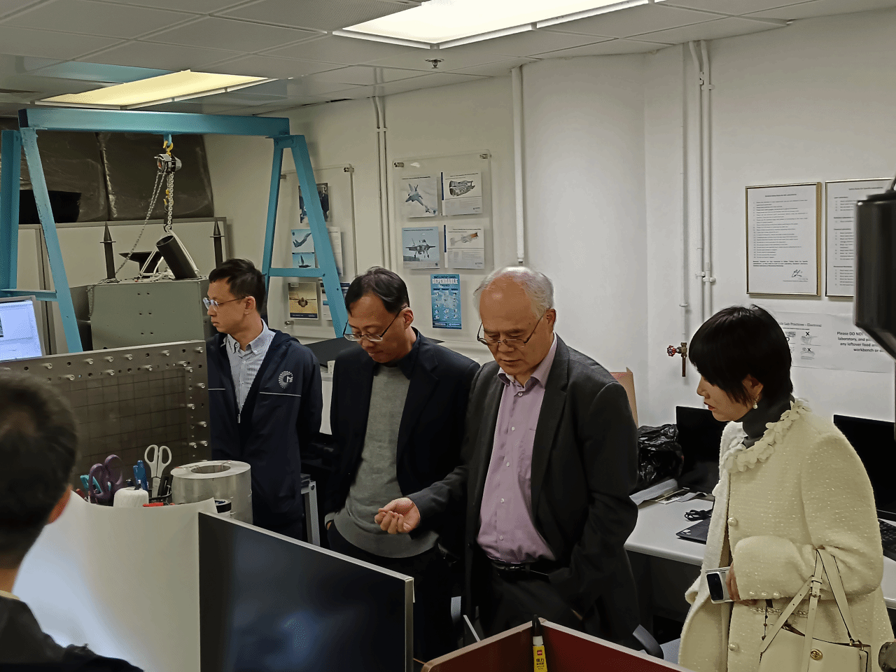 潘光一行还访问了香港理工大学,参访了机械工程系水洞实验室、声学实验室、风洞实验室、消声室、声振研究中心、校史馆等,并与学校工学院副院长、机械工程系讲座教授成利院士,副系主任唐辉教授及相关工作人员进行了交流座谈,双方就人才引育、国际交流、学科建设、人才培养等展开洽谈,期望在更深、更广、更大范围内开展合作。
