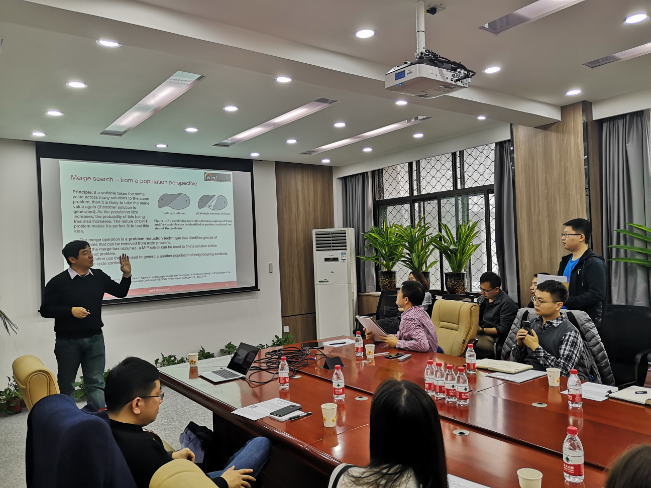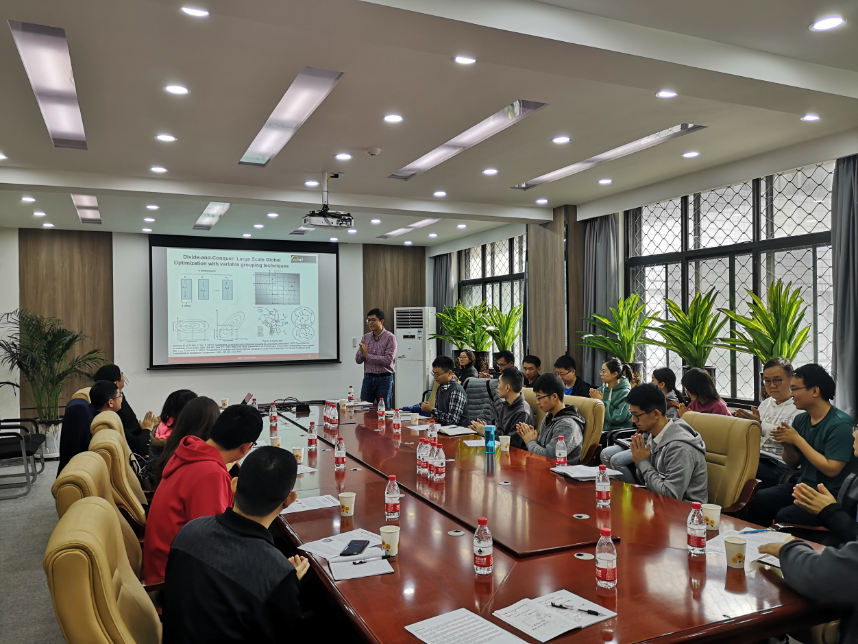最后,进入众所期待的交流环节,参会师生就共同感兴趣的问题进行了热烈探讨。同学们就实际应用问题的研究思路、Merge Search方法操作等具体问题向李晓东教授进行了提问,李教授一一作答、倾囊相授。同时,李教授与来自各个学院的教师针对包括多任务优化(multi-task optimization)、双层优化(bilevel optimization)在内的进化计算领域学术前沿发展趋势进行了深入研讨。通过在场教师对进化计算前沿研究领域的探讨,与李晓东教授的现场答疑解惑,参会师生均表示受益匪浅。