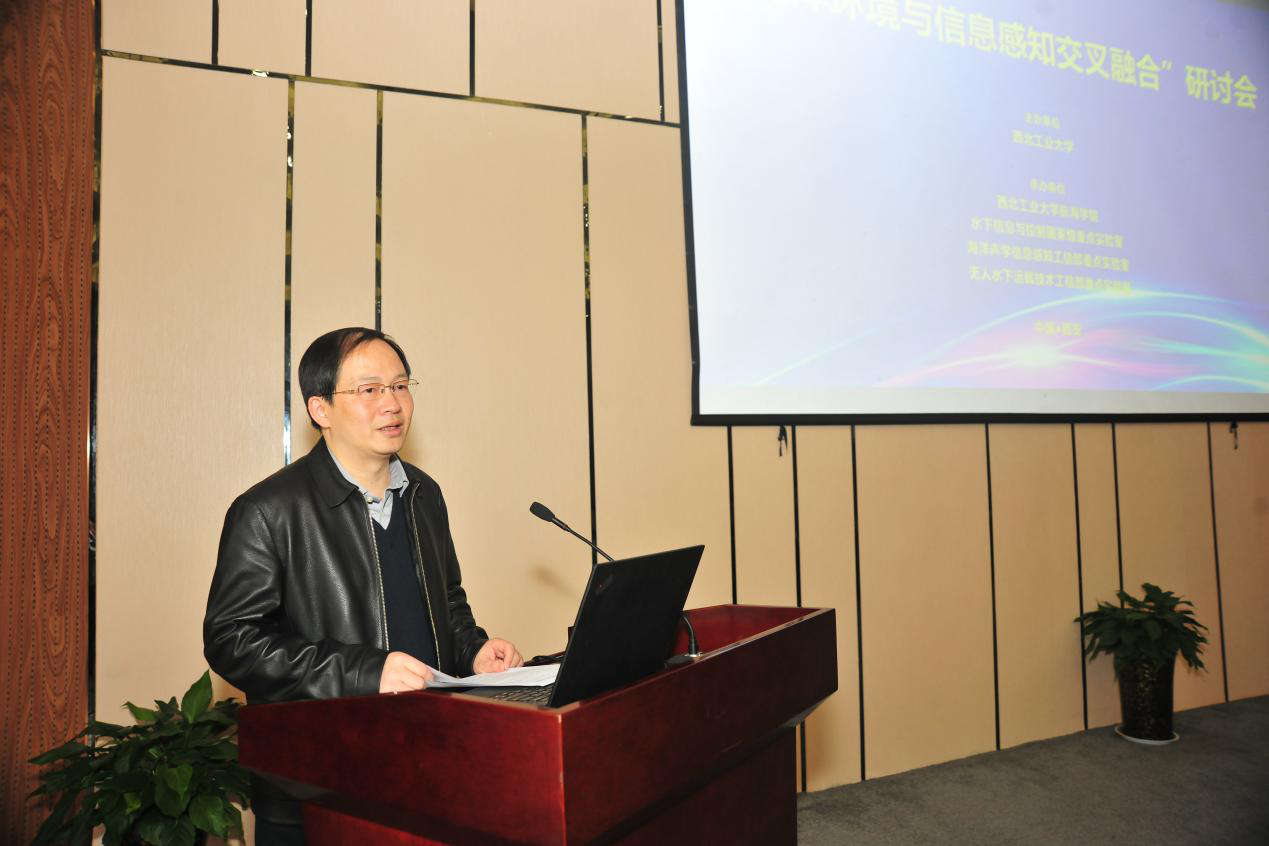 随后,正式进入学术报告环节。潘光教授做题为《水下航行器动态探测进展》的报告。计算机学院的王鹏教授做题为《跨图像、文本与知识图谱的视觉认知推理研究》的报告。张群飞教授做题为《UUV探测通信一体化》的报告。申晓红教授做题为《基于运动传感器网络的目标定位方法》的报告。王惠刚教授做题为《空海潜一体海洋移动观测系统》的报告。李慧平教授做题为《无人系统优化控制与智能决策》的报告。韩一娜教授做题为《浅海环境下水下微弱目标信息感知研究》的报告。段睿副研究员做题为《气象水文条件对水声环境与目标探测方法的影响分析》的报告。史阳副教授做题为《深海环境噪声观测与研究》的报告。陈铖副教授做题为《水声环境要素的空间遥感预测》的报告。
