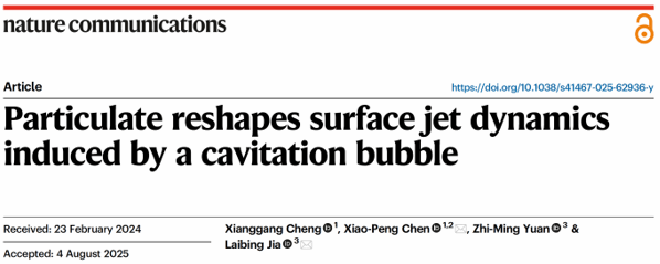 “水下仿生与流动控制”团队陈效鹏教授与思克莱德大学贾来兵博士以及元志明博士合作,在《Nature Communications》发表了题为“Particulate reshapes surface jet dynamics induced by a cavitation bubble”的研究论文。无码av