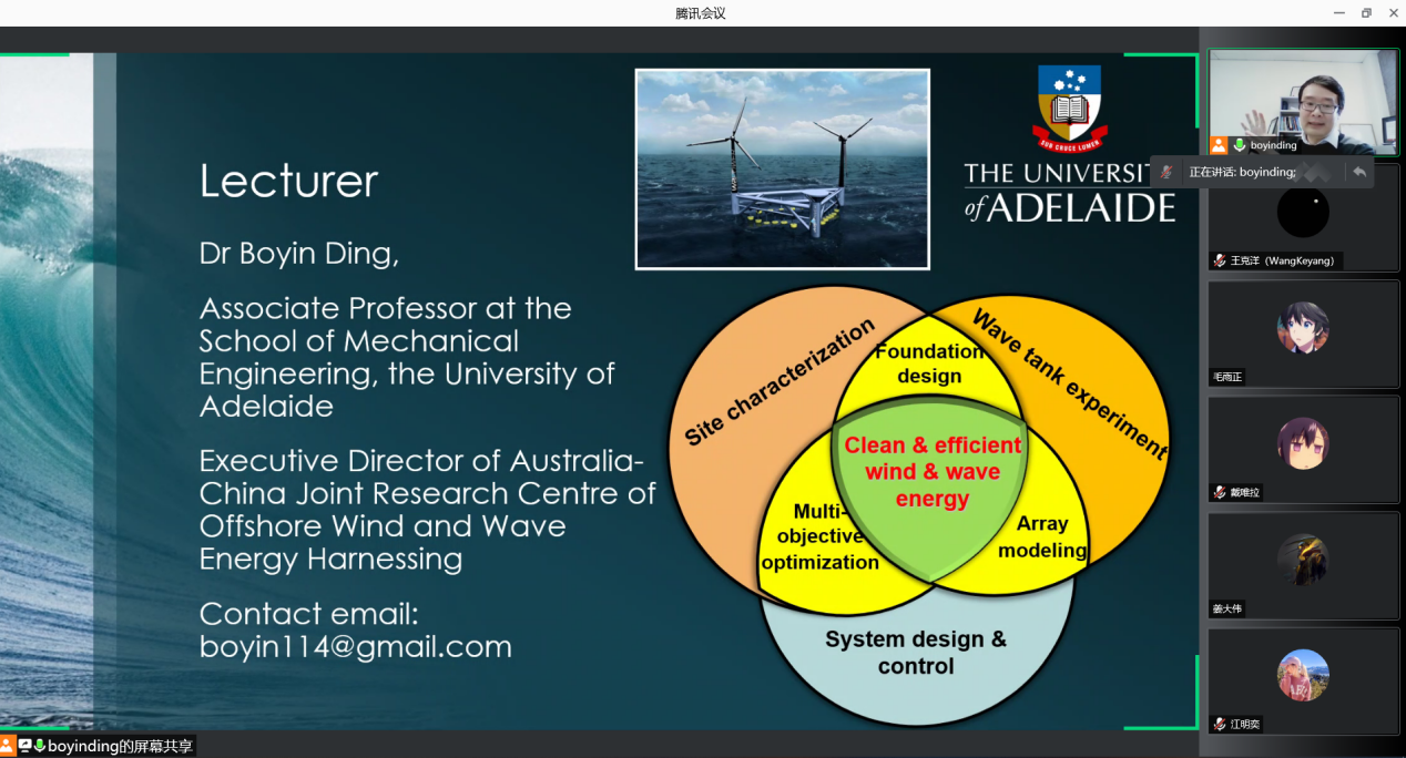 任树伟老师邀请,阿德莱德大学Boyin Ding副教授于线上开展了波浪能捕获概论课程。