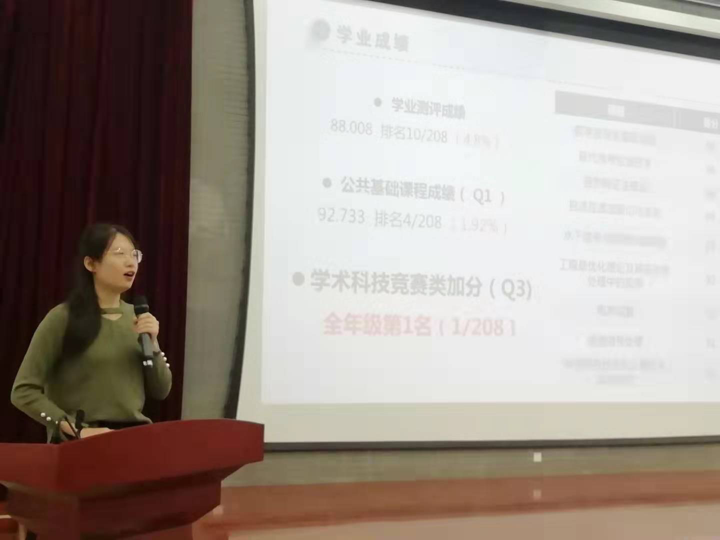 高顺丽作为“本科生模范班集体” 03081701班的代表,为同学们分享了一个优秀班集体的成长历程,介绍了同学之间如何相互帮助与共同进步,教会在场的同学们从集体的观点出发看问题。