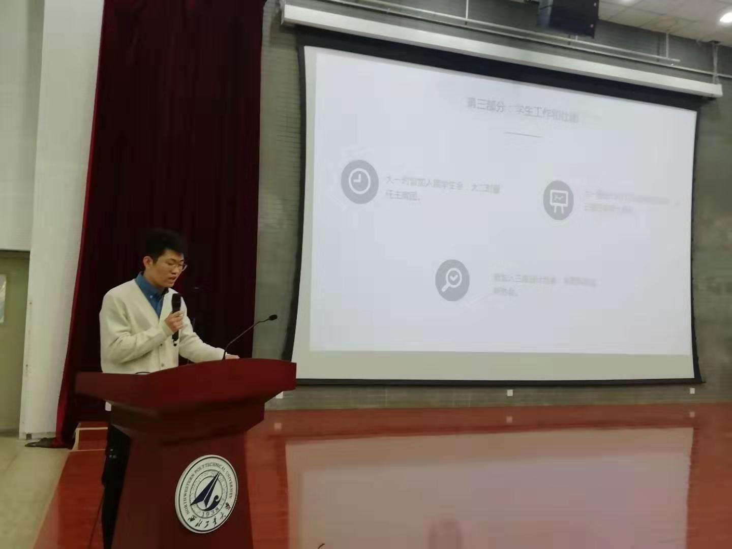 5位优秀学子为19、20级海洋工程大类同学分享了自己的成长经历和成功经验,院长助理张龙出席宣讲会,F1岗辅导员王士刚主持宣讲会。