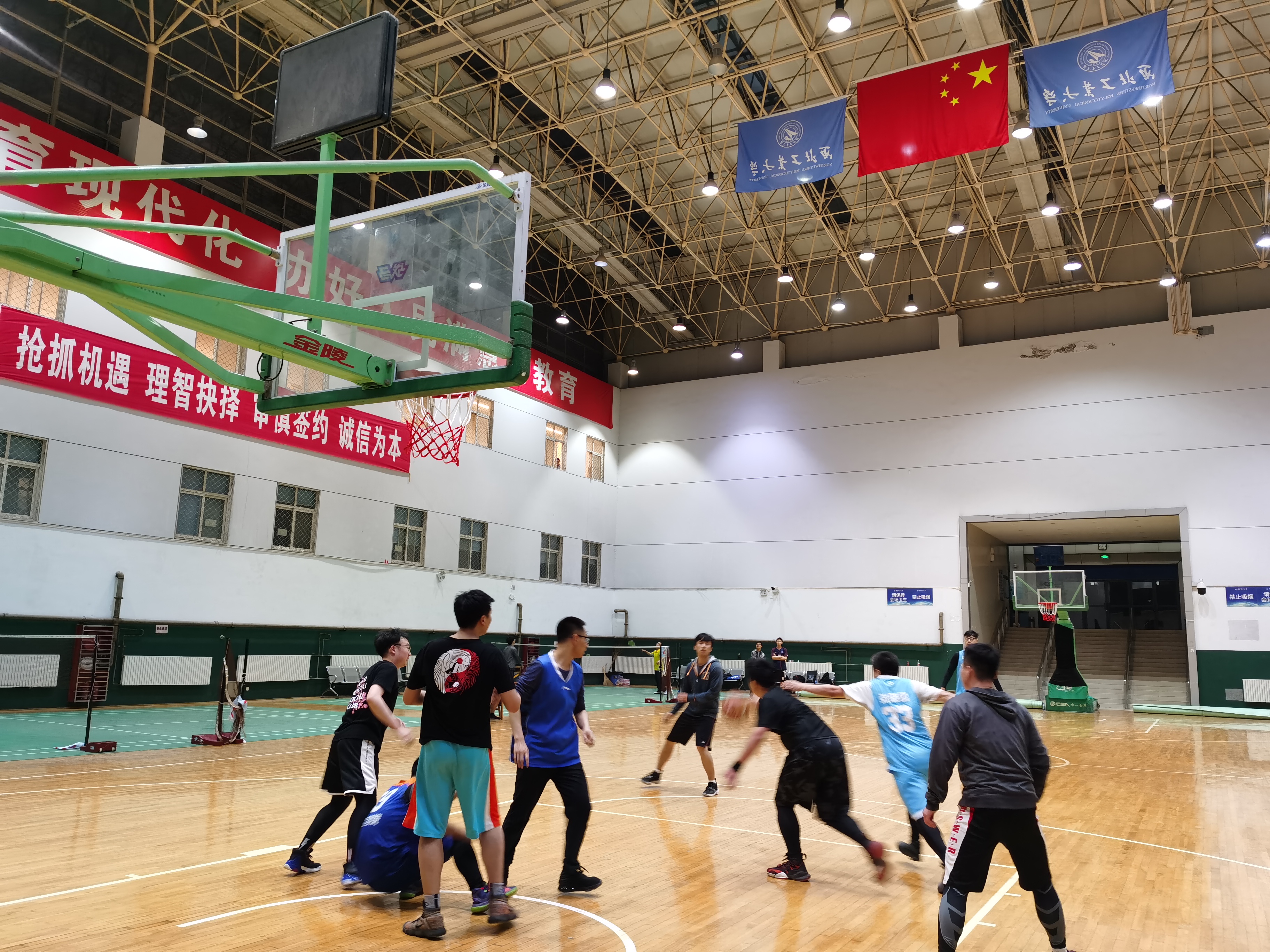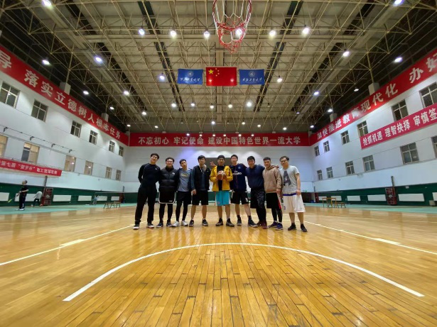 在友谊校区翱翔训练馆举办2021届研究生毕业生师生篮球赛,党委书记孙华强、副书记王银涛、院长助理张龙等近十名教师代表,以及研究生毕业生代表十余名学生参赛。
