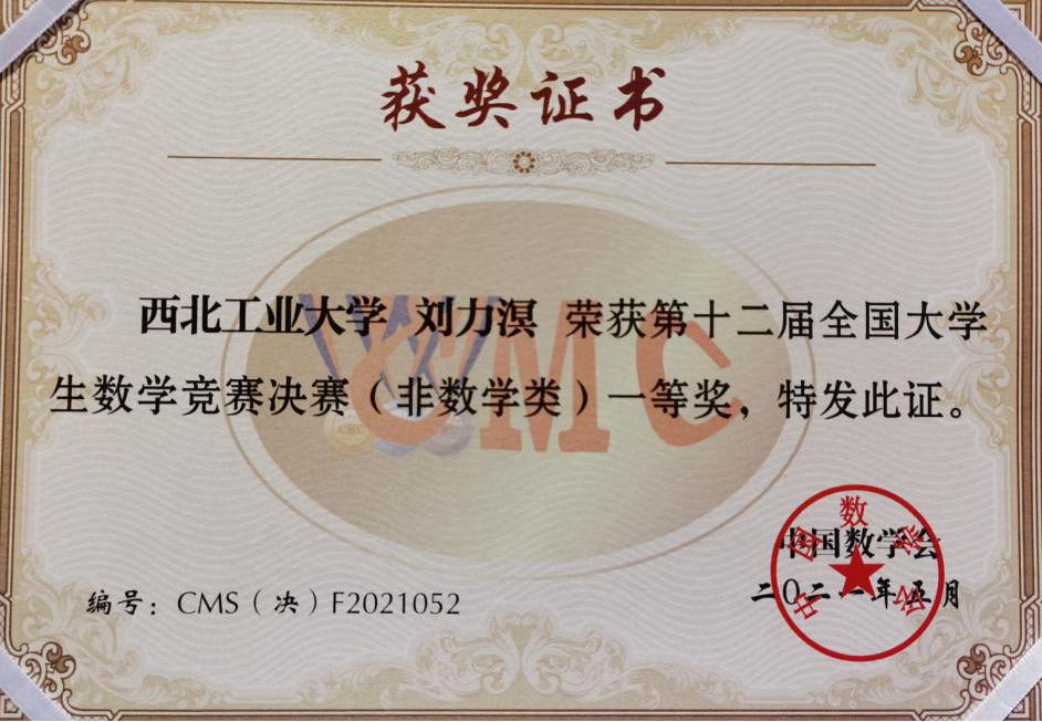 共获得3项一等奖(非数学类2项,数学类1项)。
