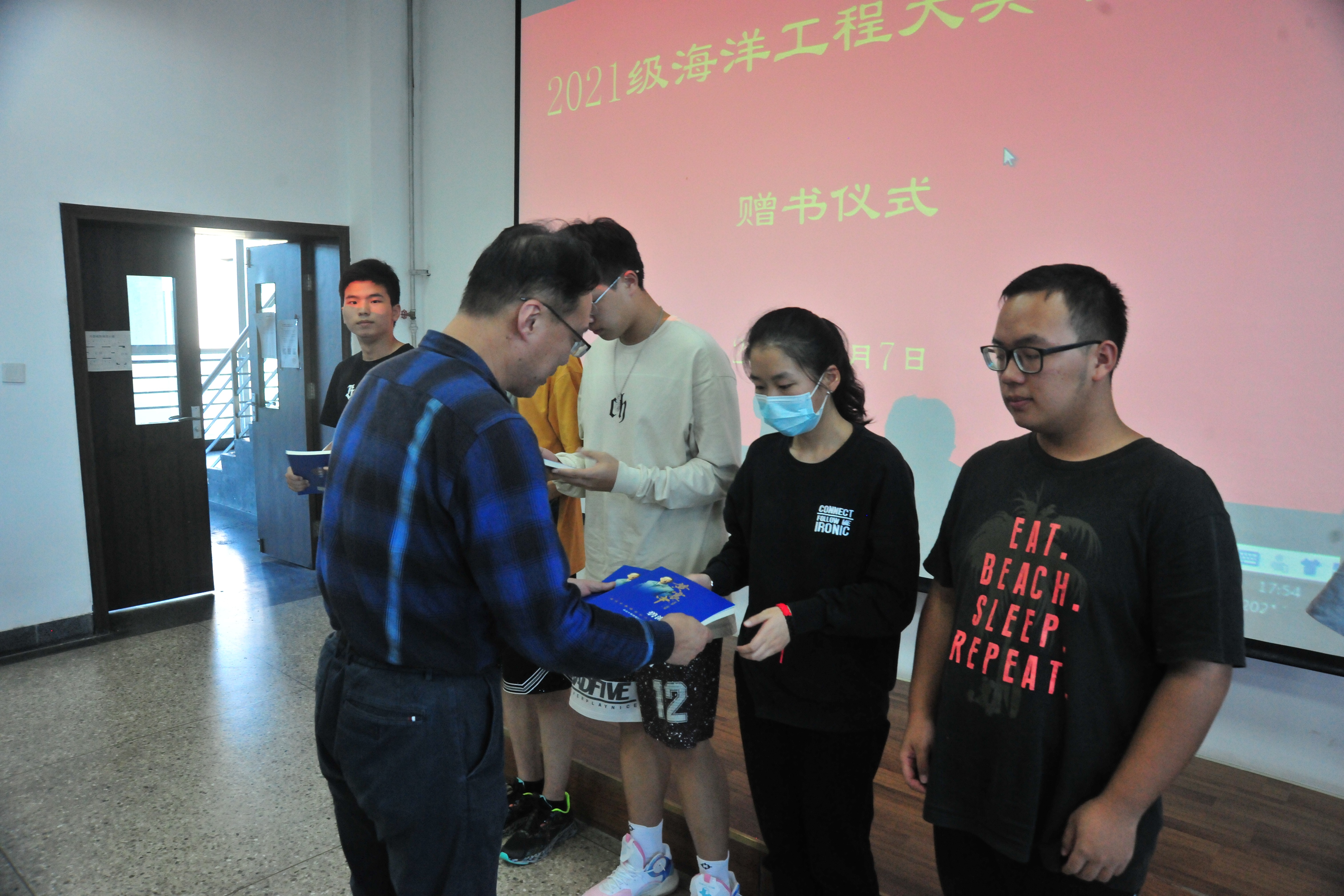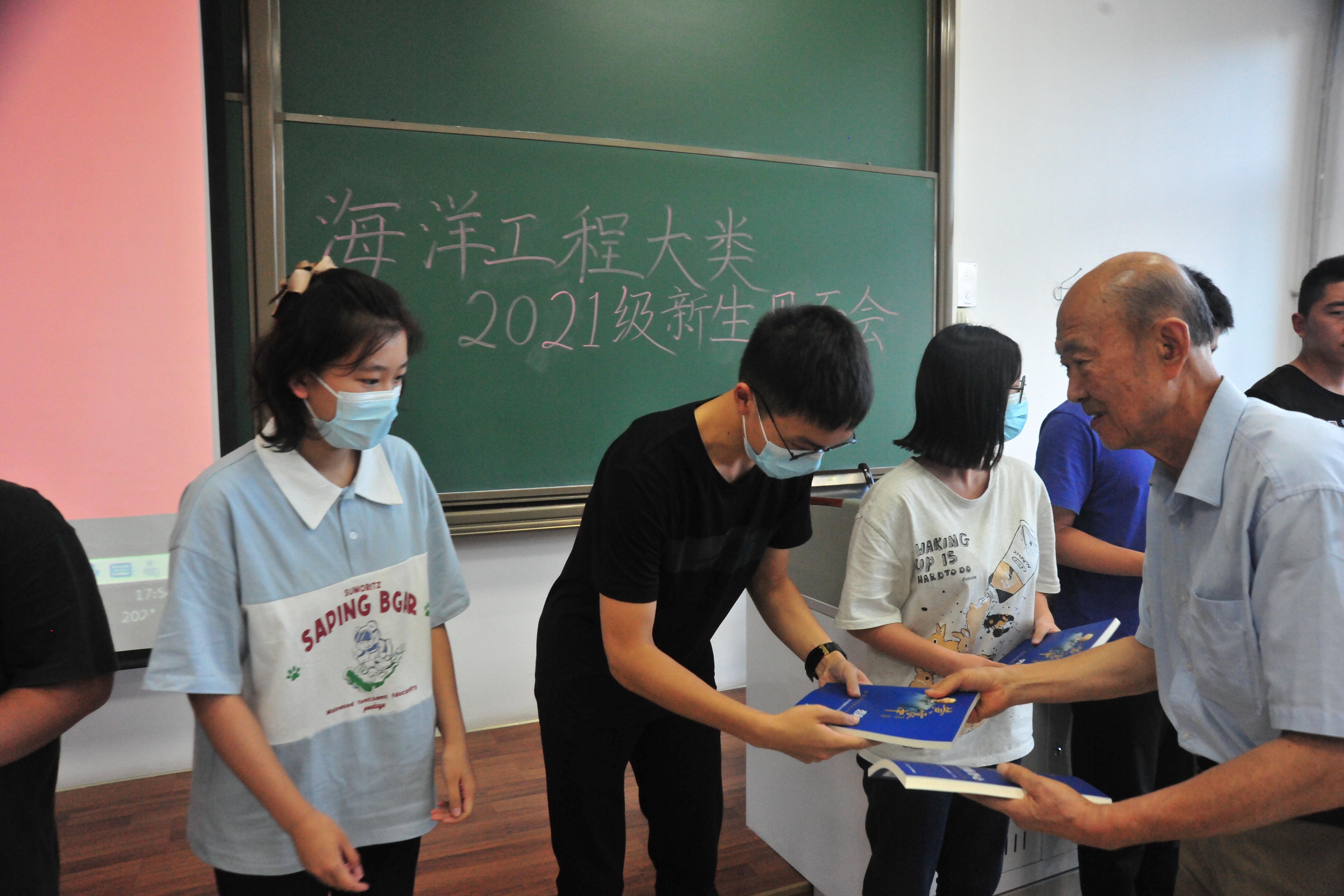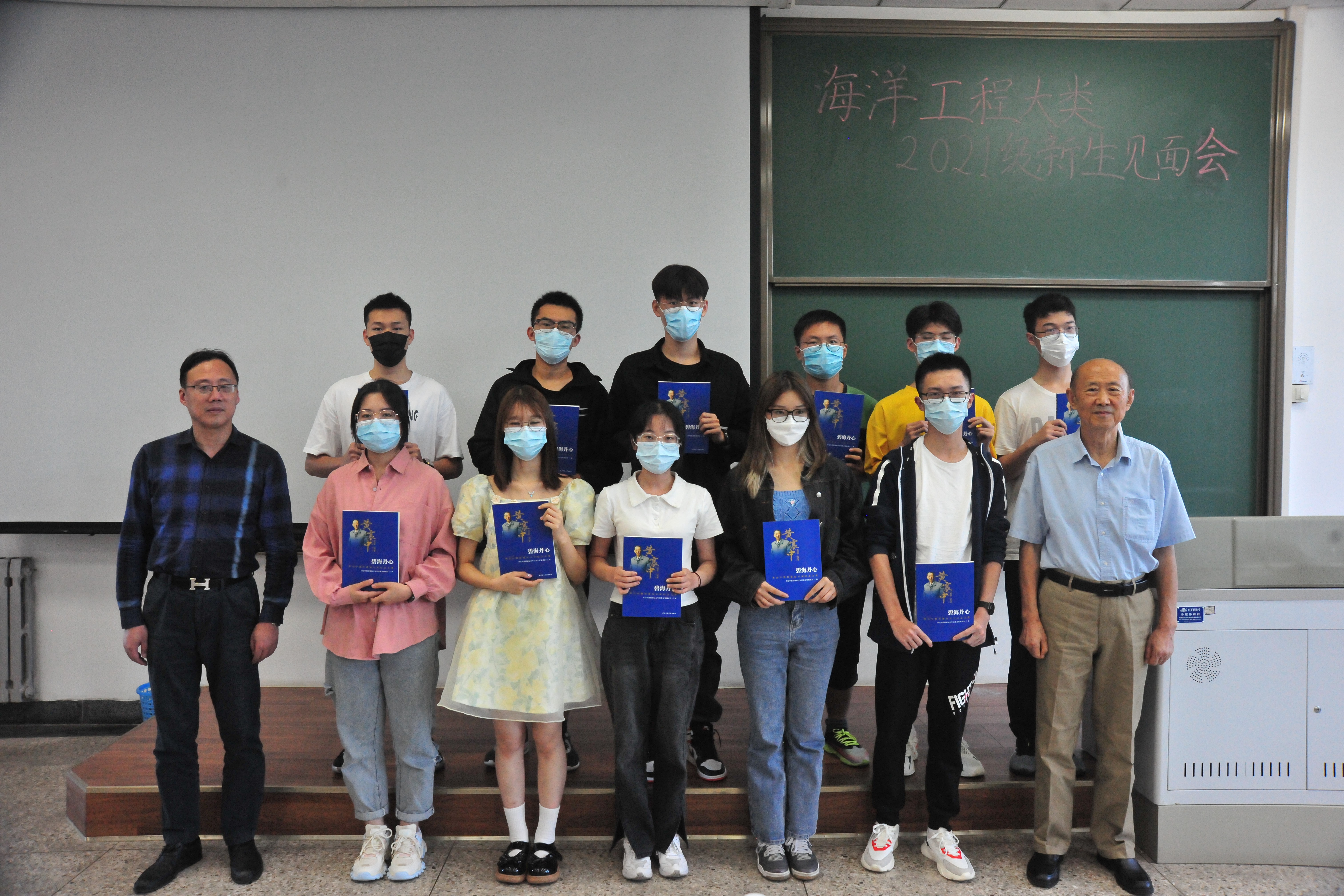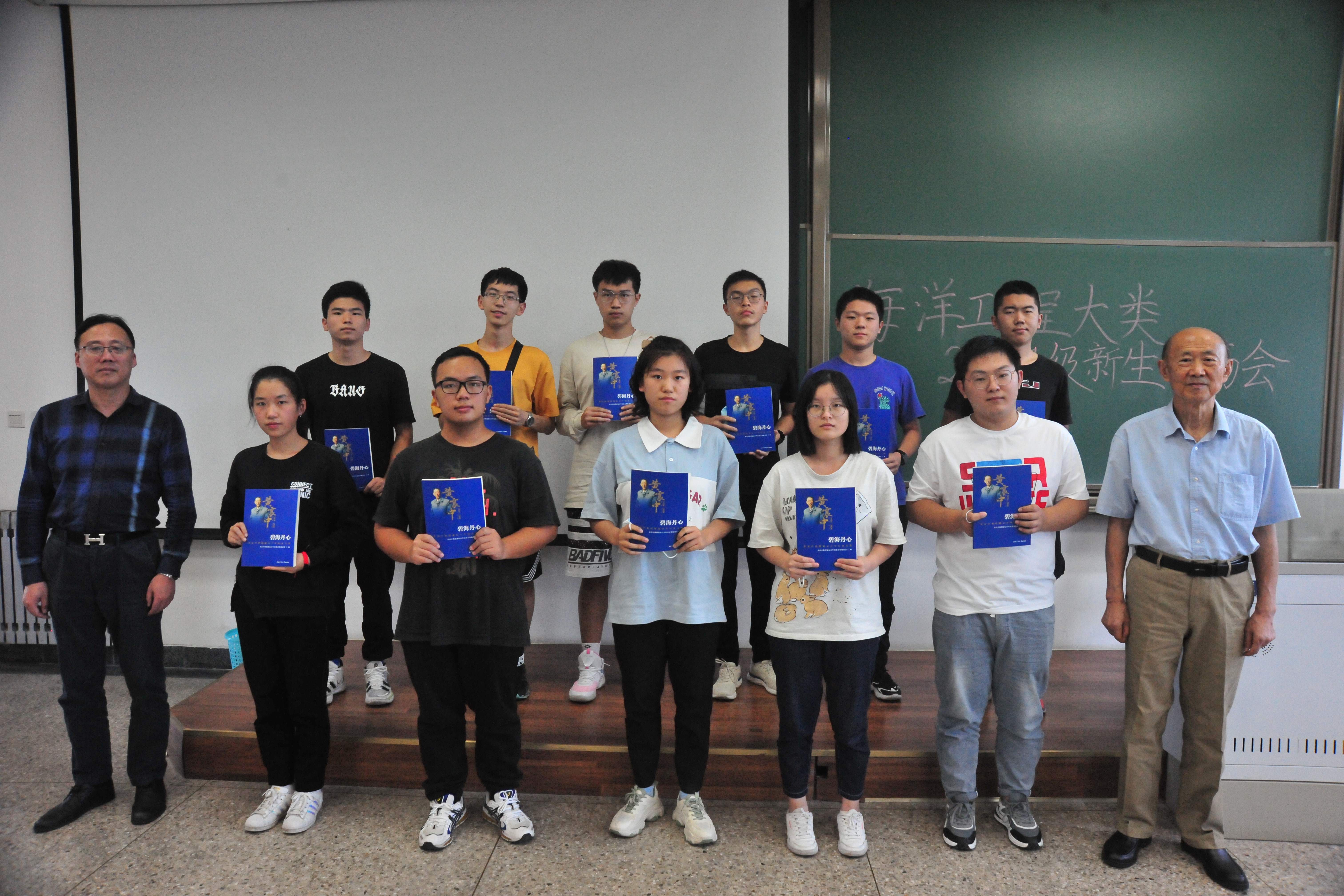 随后,由潘光、黄建国向新生代表赠送《碧海丹心——黄震中教授诞辰百年纪念文集》并合影留念。