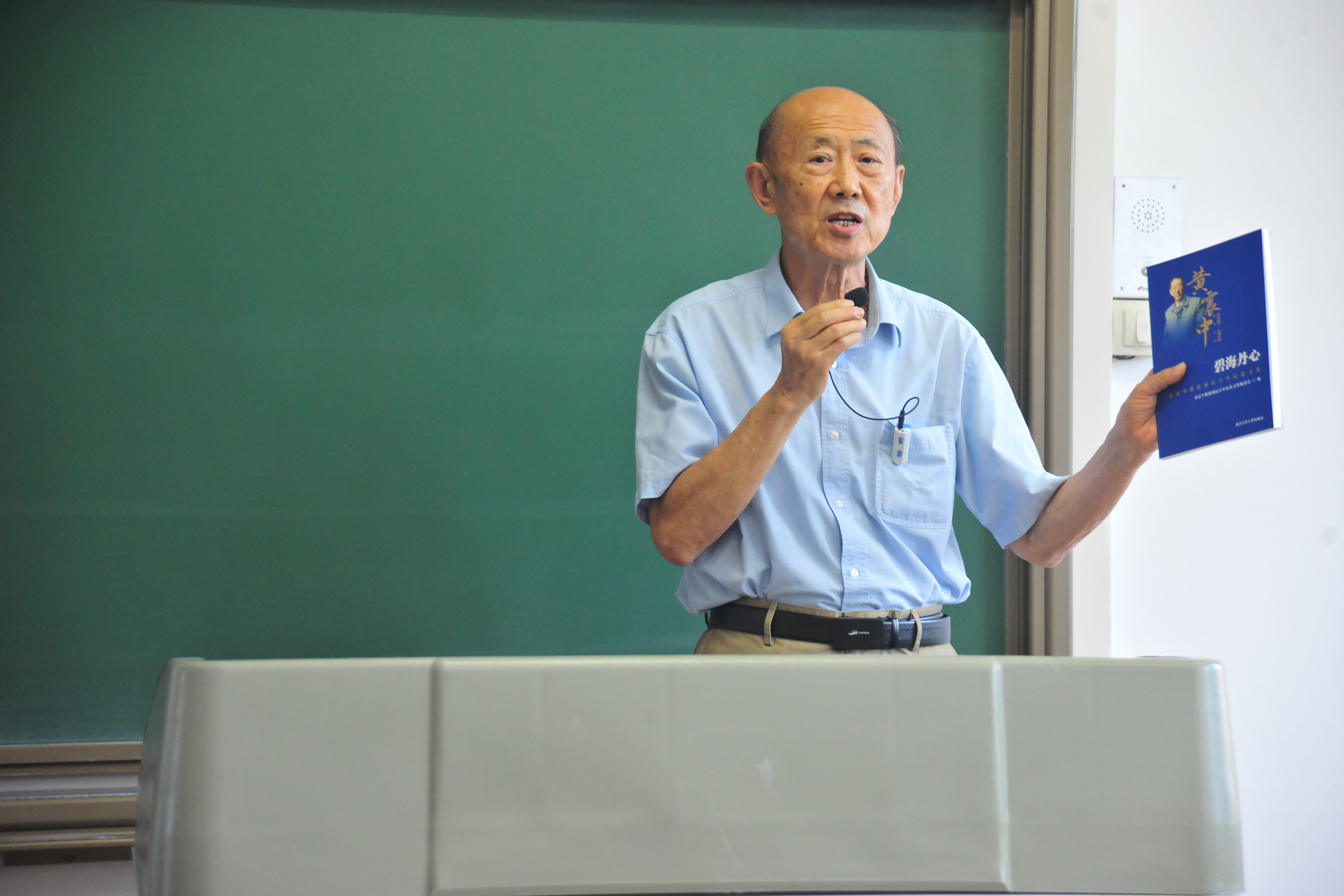 前院长黄建国教授讲话。面对着年轻的面庞,黄建国说到,大学求学是人生中非常宝贵的学习机会,是人生历程中特殊且闪光的特殊经历。并介绍了《碧海丹心——黄震中教授诞辰百年纪念文集》,书中讲述了无码av
