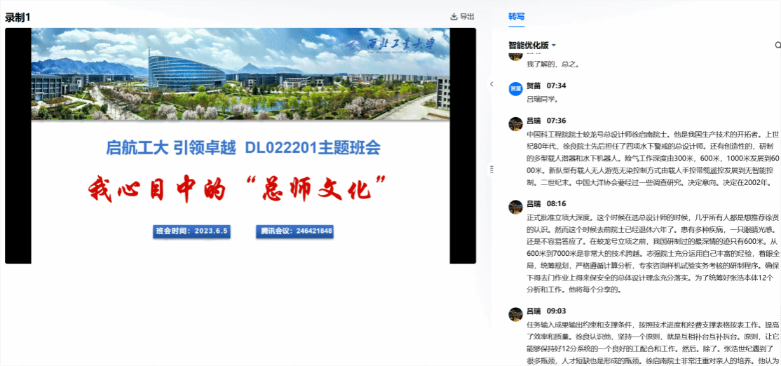 DL022201班召开了研讨总师文化的线上主题班会,由马克思主义学院贺苗老师进行主持。会议上,同学们踊跃发言,积极讨论。