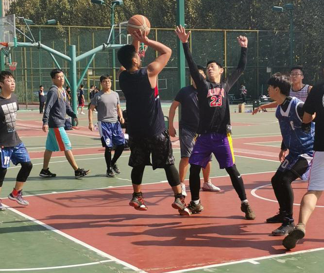 10月17号13点30分,A组研二6、7班代表队和研三4班代表队带来了一场精彩比赛。比赛前夕,各个代表队的成员早早来到了球场进行热身。比赛开始,双方进行了激烈交锋,研二6、7班凭借扎实的基本功和默契的配合连续得分,研三4班也不甘示弱,通过精准的投篮将比分持平,双方三步上篮、防守反击、联防、挡拆频频上演,场边观众也不断欢呼鼓掌,比赛也慢慢进入高潮。半场结束,研三6、7班以微弱的比分暂时领先。下半场比赛进入白热化阶段,两支队伍都咬紧牙关,尽力抓住机会。研二6、7班越战越勇,最终以53:41赢得了本场比赛。比赛结束,双方进行了友好地握手和交流。