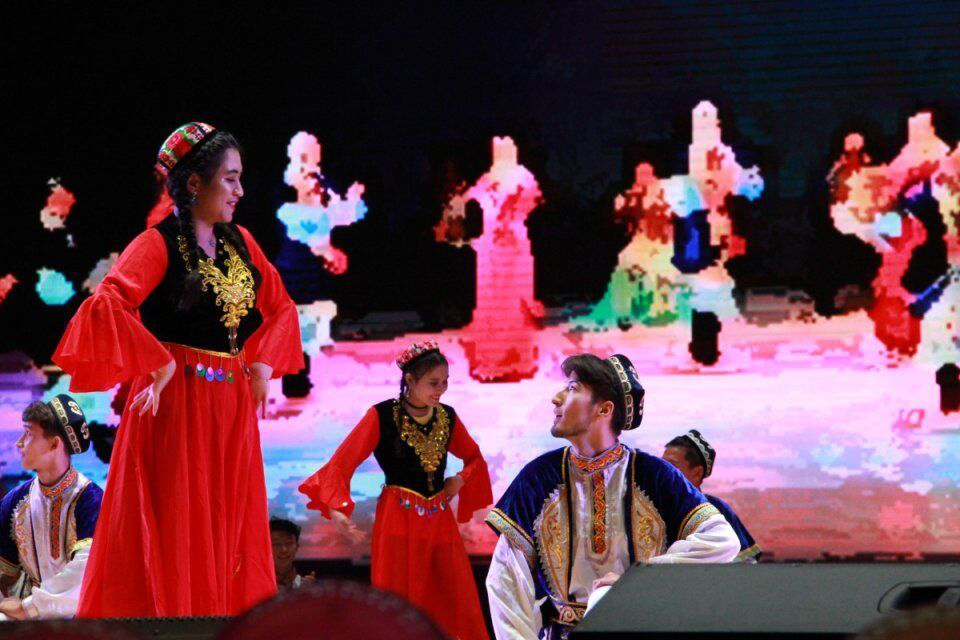 少数民族预科班的同学们用一段优美热情的民族舞《葡萄熟了》,向大家展现了新疆别样的异域风情,起舞弄清影,何似在人间。