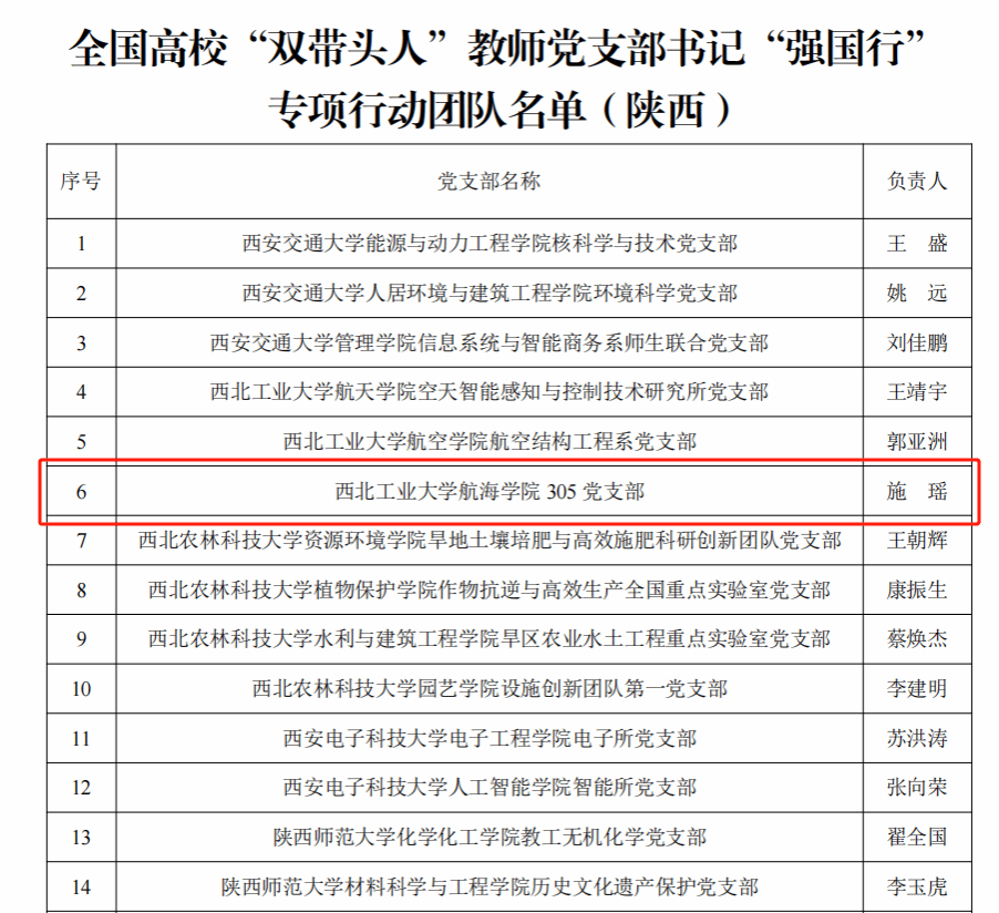 305党支部坚持党建引领,推动党建工作与人才培养等中心工作深度融合,为党育人、为国育才,成为人才培养“西工大现象”的中坚力量。聚焦国家发展战略,构筑大平台、凝聚大团队、承接大项目、培育大成果、实现大转化,以高水平党建助力“总师型”人才培养。