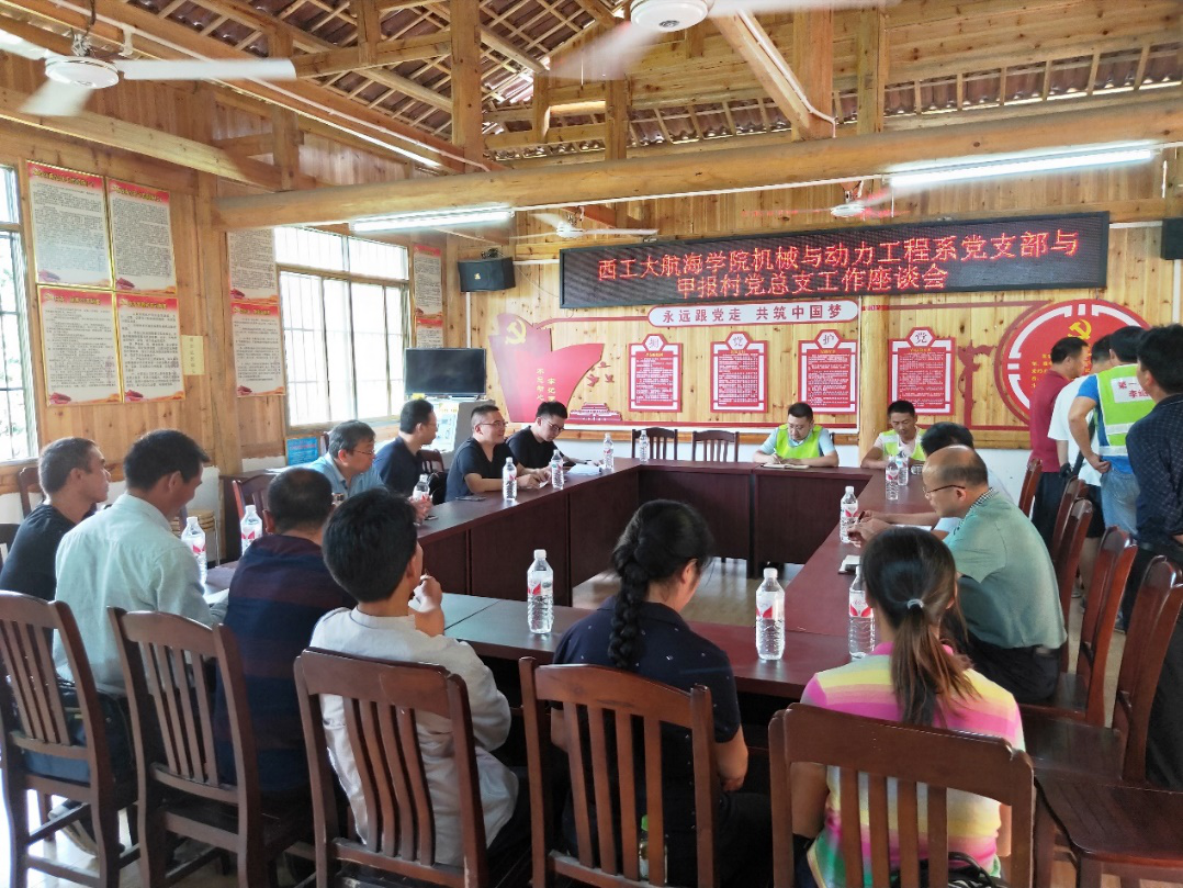 副院长(挂职)杨亮,机械与动力工程系党支部书记李代金,胡欲立教授,支部委员秦侃、张新虎等一行赴甲报村调研考察扶贫相关工作并召开座谈会。甲报村第一书记李绍辉,村党总支书记钟少雄,村主任黄汉珍,驻村扶贫工作队队员吴洪斌、肖克成,西工大驻江竹村第一书记方原,融水县生态环境局党支部委员、原局长杨绍秀,及相关工作人员参加了座谈会。