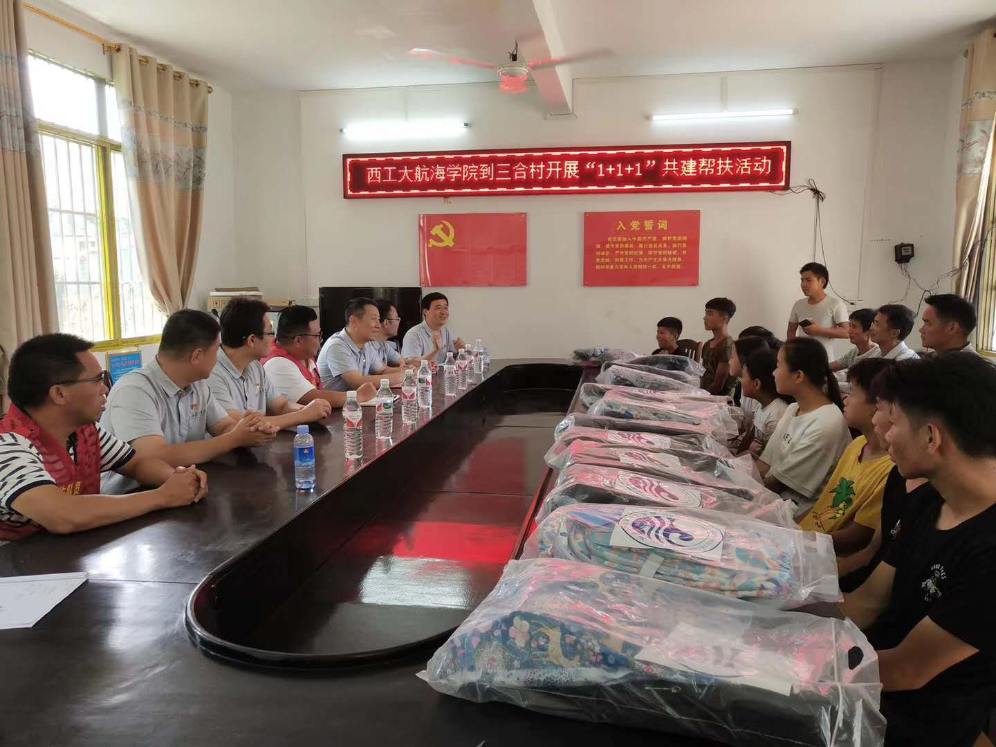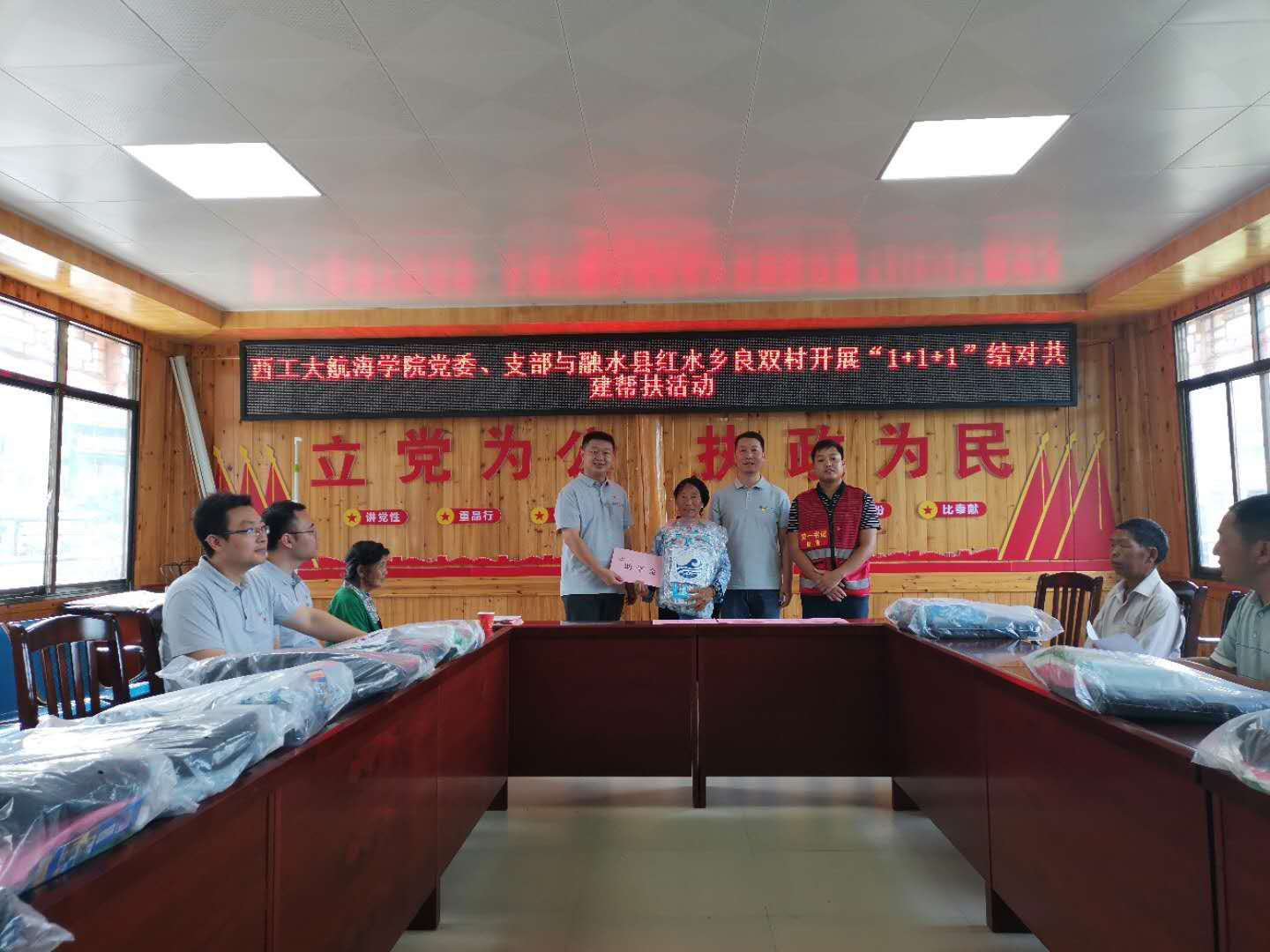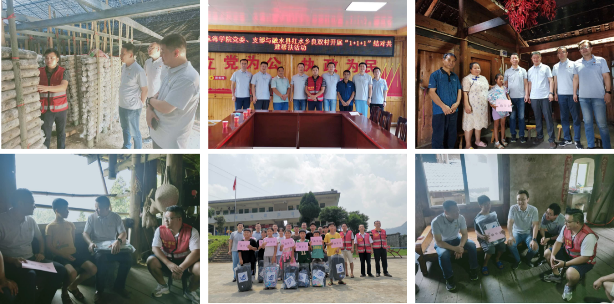 党委派出教工党支部书记、学生党员代表博士研究生、学院组织员一行6人,代表全院151名教工党员和37名参与“1+1+1”党员结对帮扶工作的学生党员,赴广西融水县红水乡良双村和安太乡三合村开展党建促扶贫支部共建活动,进一步落实师生党员与两村贫困生“1+1+1”党员结对帮扶计划,激发其内生动力,实现扶智扶志,助力两村1380户乡亲如期完成脱贫摘帽任务。