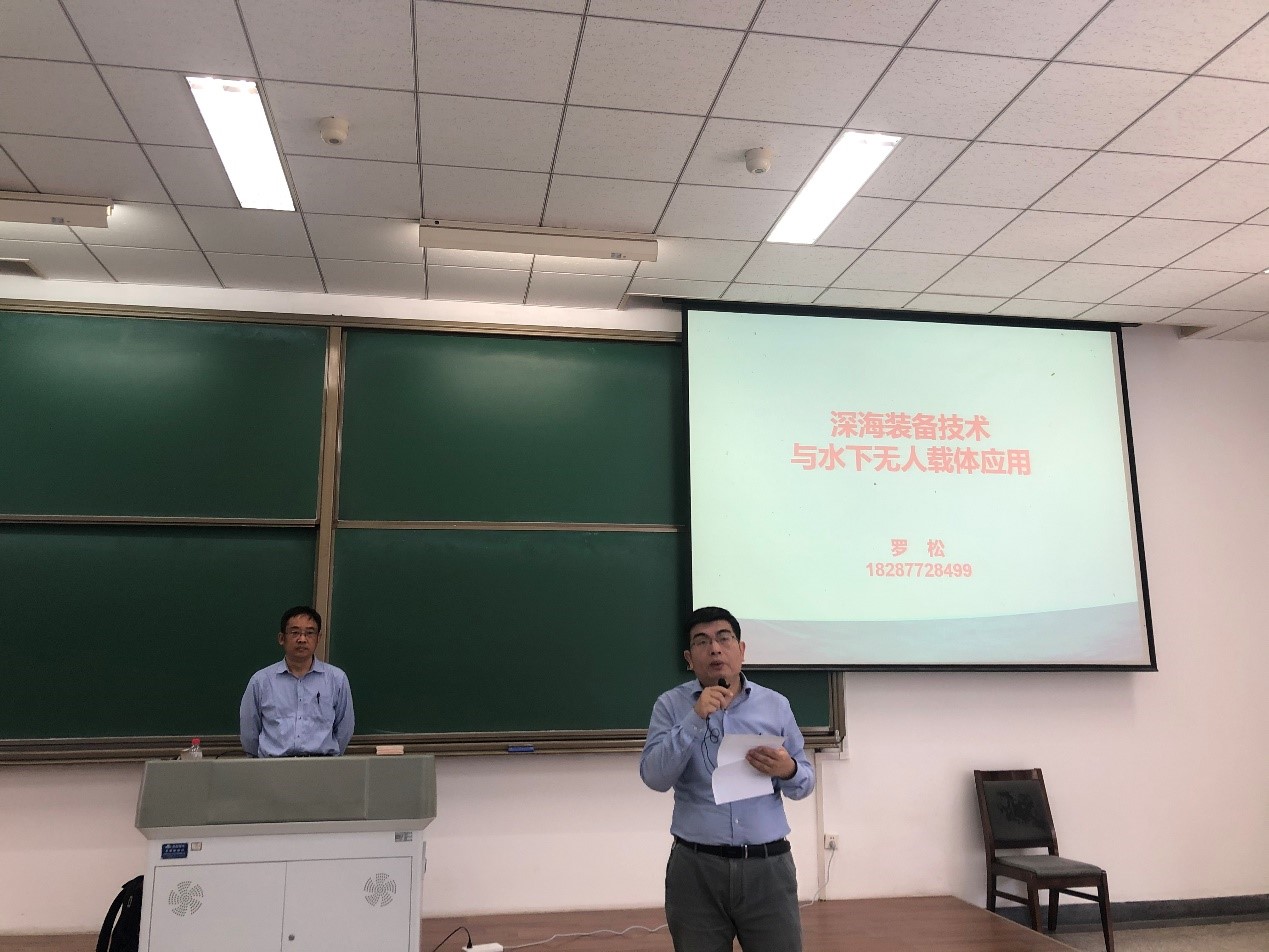 罗总从国家海洋发展战略背景出发,讲述了术声学装备技术、光电设备技术、水中电磁装备技术等主要的海洋装备技术,重点从水下装备国内外应用情况、水下资源开发装备、水下内卫及海上重大活动安保、边海防、水下机器人及装具、水下装备及系统协同五方面阐述了水下装备应用及需求,并展望了UUV或水下装备普及应用面临的问题及措施。课程期间还简要介绍了中国船舶集团的概况和第七五〇试验的试验环境条件及产品。