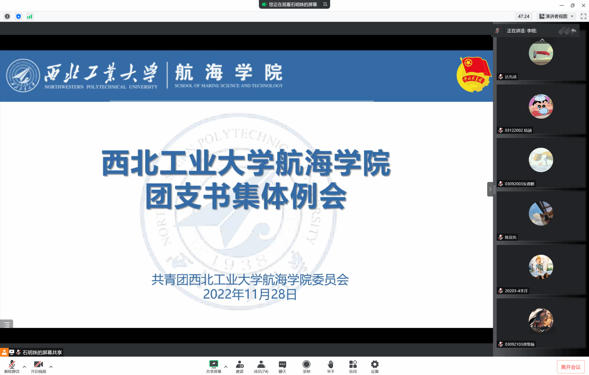 随后,李娅向各团支部书记传达了年底各项总结与近期重要工作安排。各团支部应高度重视2022年团支部“对标定级”工作,各团支部书记应仔细阅读相关工作通知与要点并认真对待年底工作述职,在相应时间节点按质按量完成各项工作。同时,鼓励共青团干部参加无码av