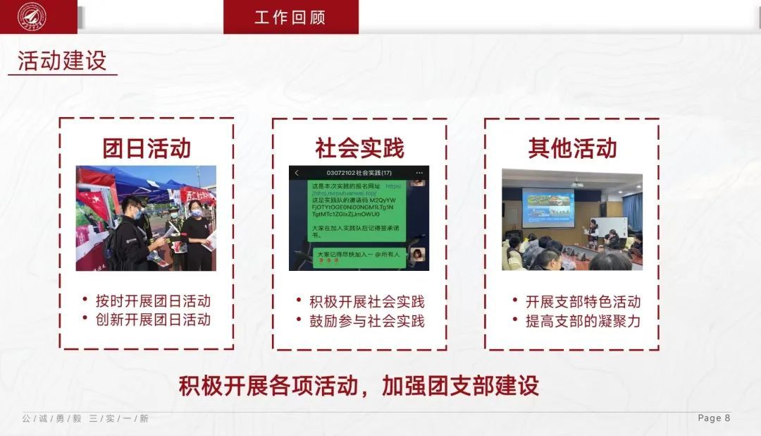 王银涛做总结讲话。王银涛对各团支部一年来取得的成绩表示肯定,对支部书记们的辛勤付出表示感谢。王银涛表示,习近平总书记关心青年成长成才,多次对青年工作做出重要指示。团支部书记的工作是支部建设的核心环节,各大班团支部书记工作踏实,为同学做实事,有坚实的数据支撑。作为共青团工作一线的团支部书记,责任重大,使命光荣,要树立坚定的理想信念,组织青年,服务青年,承担更大责任,争取更大荣誉。在未来,大班团支部书记要继续把担当落实到具体工作中,团支部书记间分享工作经验,落实好团务工作,引领青年学子奋发有为。