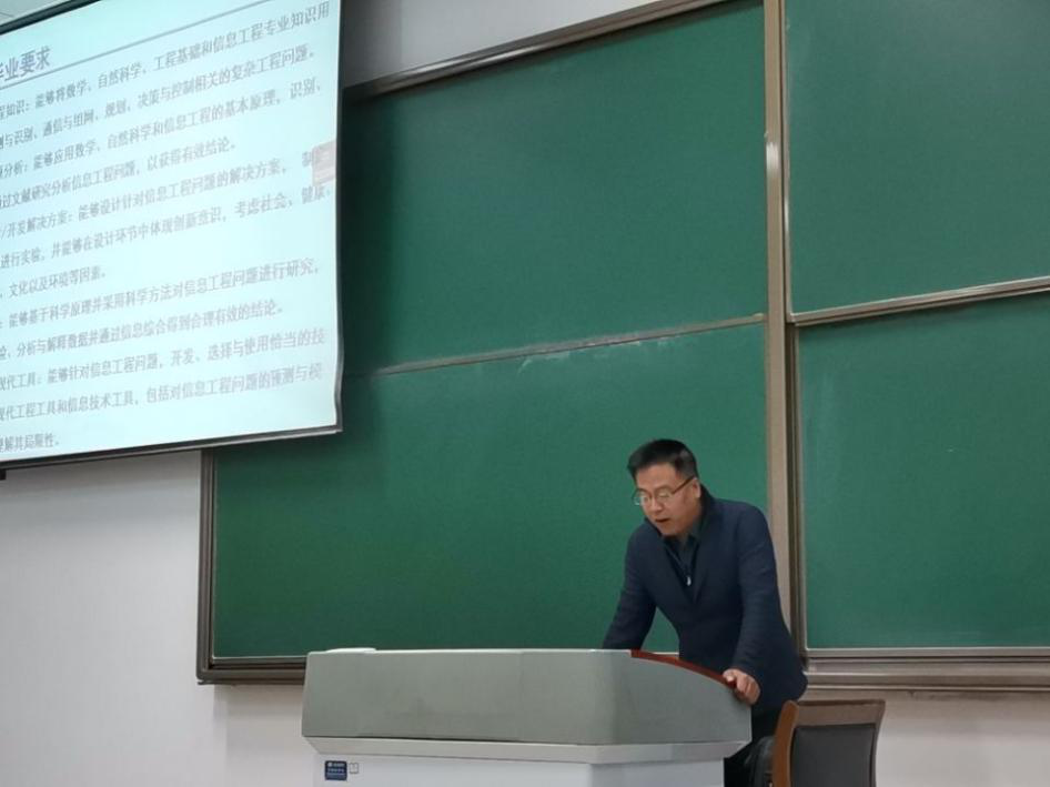 课程伊始,严老师从信息工程专业概况切入。之后,严老师从毕业要求、学制与学位授予、学分与学时等方面,向学子们介绍了信息工程专业的整体情况。