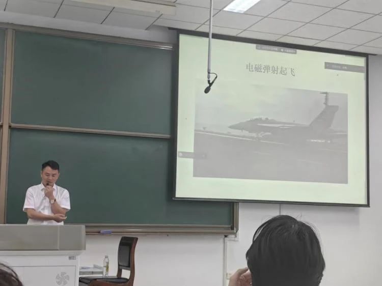 继而何佳老师由浅入深,为大家从航母的基础构架说起,介绍了常见的舰载机,电子站飞机,侦察机,加油机,勤务机等,让同学们理解了这片大海上的扁舟之于各类飞机的意义,更是之于我国海防事业的意义,并带领同学们学习了更加深刻的知识内容,例如在航母上飞机是如何利用狭小的起飞空间完成起飞,深刻激发了同学们的好奇心,展示了看似普通的航母所蕴含的奥妙。不仅如此,何佳老师还介绍了世界历史上的有名航母,诸如小鹰号,尼米兹号,尤其是尼米兹号的设计图高达十万张,可见大国重器都是经历了千锤百炼才锻造出来的。