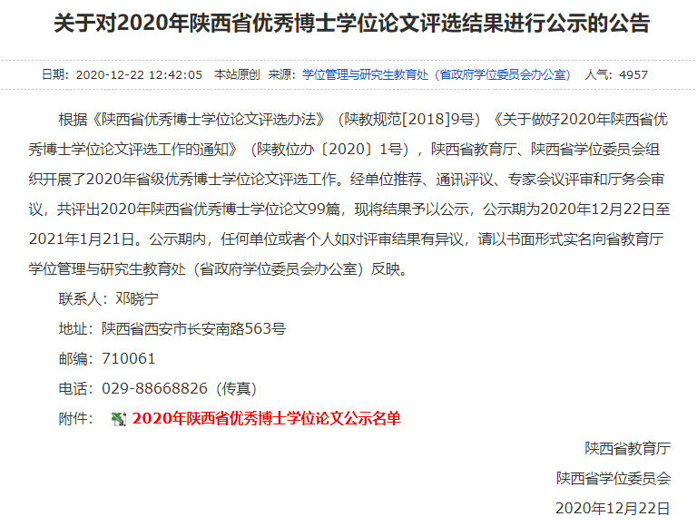 日前,陕西省教育厅公布了2020年陕西省优秀博士学位论文评选结果,无码av