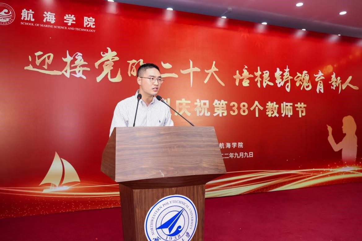 校研究生最满意教师李代金发言,他总结了自己从教生涯中的三个关键词,分别是感谢、自豪、和行动。他感谢学生的认可和学院的培养;自豪于自工作以来能够与学生快乐地共同成长;最后他回望过去展望未来,决心将荣誉转化为动力,继续做好教师工作。