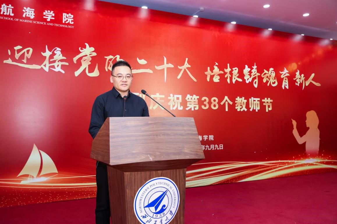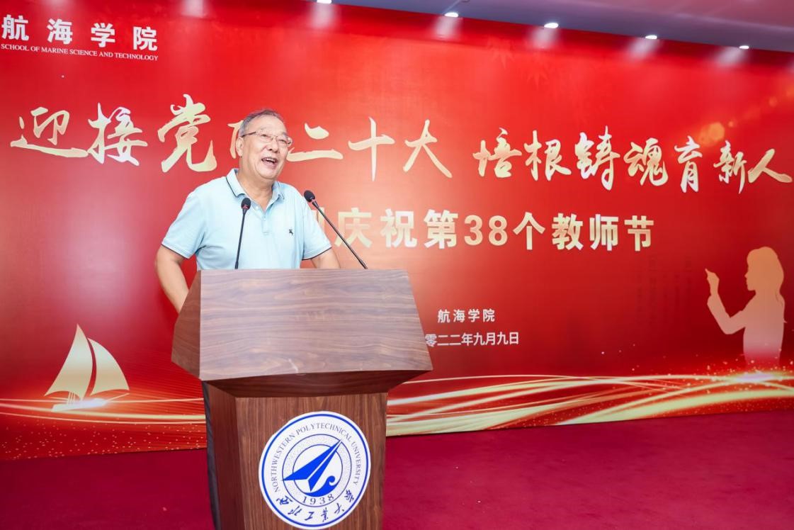 接着,退休教师代表、博士生导师贺昱曜发言。他强调人才培养的重要性,教师应爱生如子,兢兢业业把教书育人的工作做实做好,并与大家分享了与学生之间的趣事。