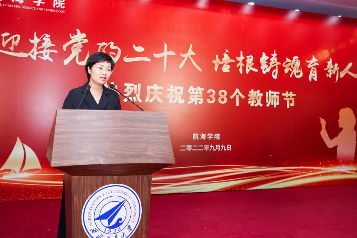 2022年度优秀辅导员、硕士生导师张晓燕发言,她讲述了关于辅导员工作的体会。要以“一切为了学生,为了一切学生”为目标,深入实际,进课堂、进宿舍、进班级,了解学生的困点和难点,解决实际问题。张晓燕谈到辅导员应注重思政教育,为党育人、为国育才是思想引领的方向,要紧密联系大学生思想和工作实际,围绕学生,关照学生,服务学生,让当代大学生明确肩负的责任与使命,鼓励他们将个人成长与国家民族命运紧密联系在一起,立大志向,上大舞台,做大贡献。