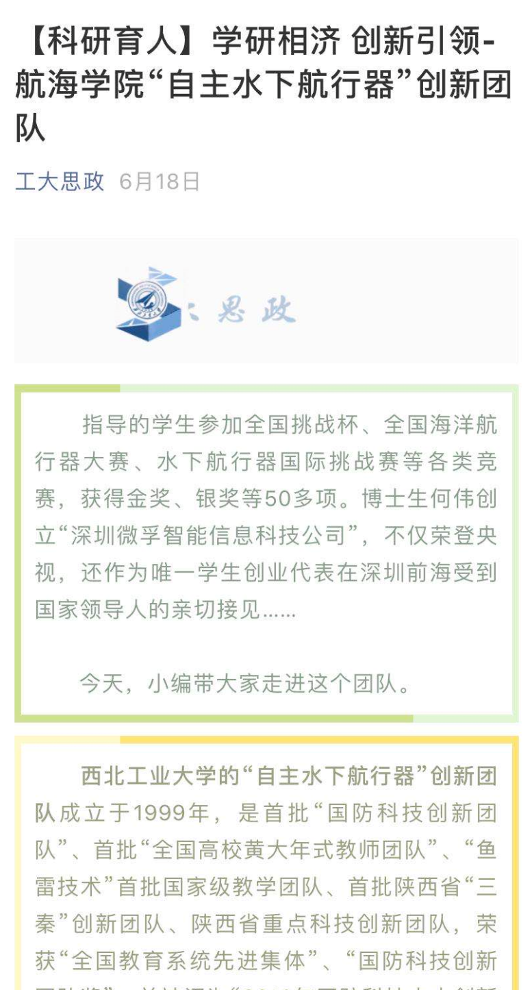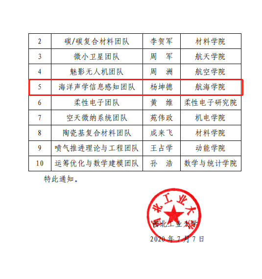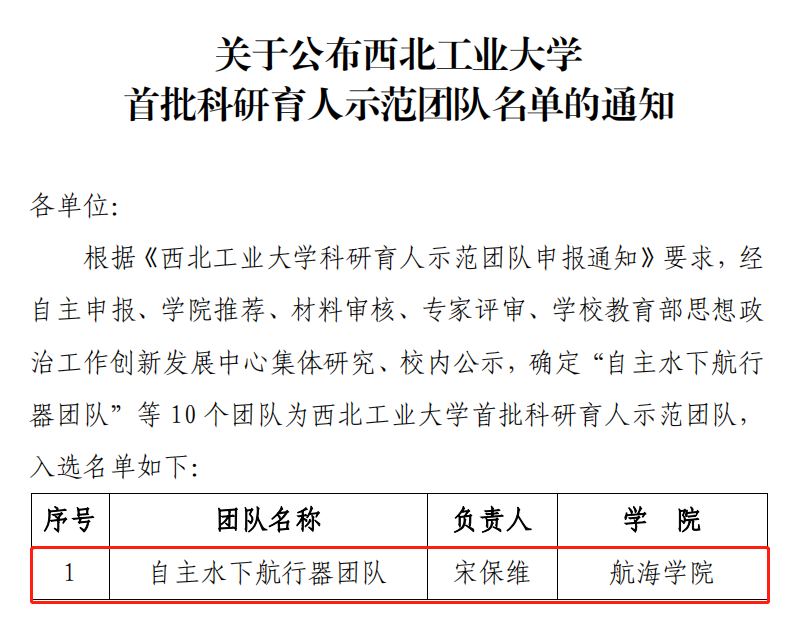 首批科研育人示范团队。我院自主水下航行器团队、海洋声学信息感知团队入选。