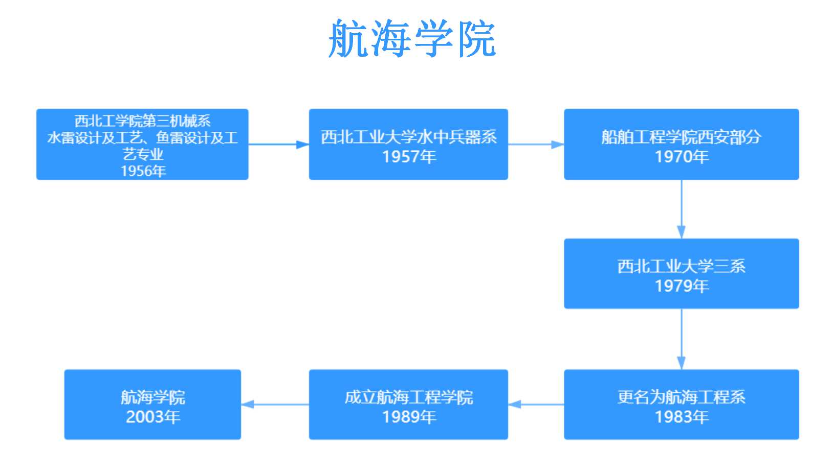 1970年,国务院决定将国防工业院校分别划归各工业部领导,西工大归三机部,西工大水中兵器系和哈尔滨军事工程学院海军工程系归六机部(造船工业部),不久六机部决定由两系合并组建船舶工程学院,三系暂称“船舶工程学院西安部分”。